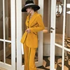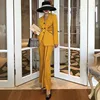 Women Business Yellow Slim Blazer 2 Piece Set Single Breasted Blazer+High Waist Flared Pants Trousers Elegant Lady Suits Outfits