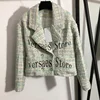 2021 luxury design fashion pearl double breasted women's suit jacket temperament Lapel long sleeve tweed long sleeve suit jacket
