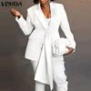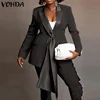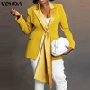 VONDA Autumn Pleated Long Sleeve Suit Blazer 3 Colors Women Solid Color Lapel Collar Button Up Coats With Pockets Female Jackets