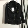 21 luxury design high-end fashion women's badge embroidered Lapel long sleeve top temperament slim wool suit coat blazer women
