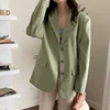 Women Oversized Plaid Green Blazer Casual Single Breasted Suit Jacket Female 2021 Loose Blazer Outwear