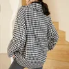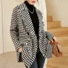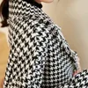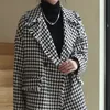 Casual Black Houndstooth Tweed Wool Blazer Women Checked Jacket Overzise Vintage Office Lady Coat Winter Autumn Outerwear Chic