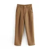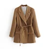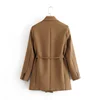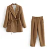 elegant women high quality brown suit set 2021 fashion vintage ladies cotton jackets casual female soft suits girls chic