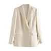 2022 Fashion Office Lady Wear Double Breasted Sequin Blazer Coat Vintage Long Sleeve Pockets Female Outerwear Chic Tops