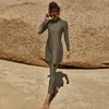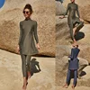 2021NEW Muslim Swimwear Women Solid Color Full Sleeve Side Slit Swimsuit 2pcs Islamic Burkinis Female Bathing Suit Two Piece