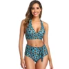 2020 Fashion Women Bikini Swimsuit Plus Size Two Pieces Halter Ruched High Waist Leopard Print Tankini Set Polyester Swimwear