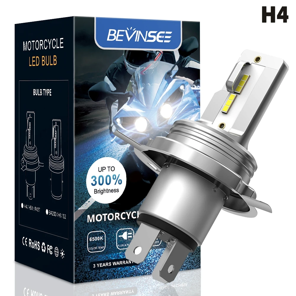 Bevinsee H4 LED Motorcycle Bulbs BA20D Headlight 12V 1500LM 6000K Pure White BA20D H4 LED Moto Bulbs Motorbike Lamp For ATV UTV