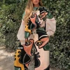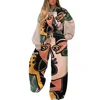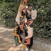 Two Piece Set Women Fashion Print Loose Tracksuit Long Sleeve Sweatshirt Top +Printed Pocket Joggers Pants Outfits Matching Set