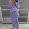 Women's Knitting O Neck Solid Color Pullover Sweater Top+ Pocket Slim Skirt Set Female Two-Piece Set