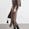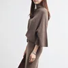 2 piece set women fashion sweater autumn knit suit loose hooded high collar shirt and tassel bag hip skirt elegant suit female