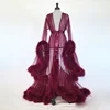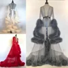 Fashionable Bridal Feather Nightgown Transparent Robe Tulle Lady Sexy Lingerie Nightgown Long Skirt
