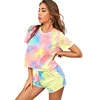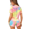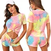 Tracksuit Female Summer Shorts Suit T-shirt 2 Piece Set Sexy Tie Dye Clothes Korean Lounge Wear Matching Clothing Club Outfits