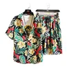 2021 New Hawaiian Beach Flower Shirt Short Sleeve Set Men's Loose Shirt Shorts Two Piece Set Men's