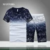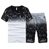 Casual Men Tracksuit Sets Summer Solid Patchwork Slim Fit Mens Sportswear Jogger T-shirts+Shorts Two pieces Sport Suits Clothing