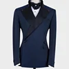 2022 New Navy Blue Double Breasted Peak Lapel Wedding Groom trajes para hombre Men Suits Wedding For Prom Dinner Best Man Blazer