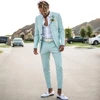 Summer Beach Mint Green Men Suits Two Pieces Lapel Groomsmen Suits Solid Color Men Wedding Prom Suits Jacket+Pant Hot Sale