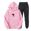 2-piece set Hoodies Sweatpants Suit Rose Flower Print Tracksuit Men Women Sweatshirt Suit Fleece Hoodie Pants Jogging Pullover