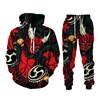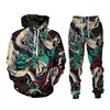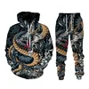 Autumn Winter 3D Oriental Dragon God Printed Men's Hooded Sweater Set Male Sportswear Tracksuit Long Sleeve Men Clothing Suit