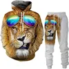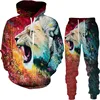 Autumn Winter 3D The Lion King Printed Men's Hooded Sweater Set Men's Sportswear Tracksuit Long Sleeve Men's Clothing Suit
