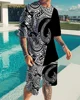 Men's Short-Sleeved T-Shirt Cool Geometric Pattern 3D Printing Summer Man Sportswear Oversized Shorts Two-Piece Suit