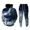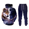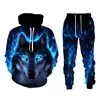 Autumn Winter 3D Animal Ferocious Wolf Printed Men's Hooded Sweater Set Male Sportswear Tracksuit Long Sleeve Men Clothing Suit