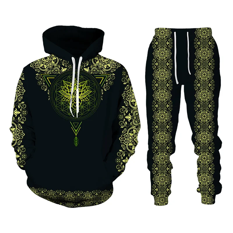 Geometric Lotus 3d Printed Hoodie Pants Set Male Autumn Winter Pullover Sweashirt Men Tracksuit Fashion Men's Clothing Suit