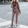 Natural fox fur collar winter Down Jacket + Cotton Trousers Two-piece Suit Ski Suit Cold and Windproof warm cotton pant sets