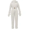 Winter Hooded Jumpsuits Parka Elegant Cotton Padded Warm Sashes Ski Suit Straight Zipper One Piece Women Casual Tracksuits