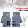 USB Electric Heated Gloves 2-Side Heating Convertible Fingerless Glove Knitted Mittens Adjustable Heat Waterproof Cycling Skiing