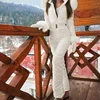 One Piece Bodysuit Ski Suit Winter Hooded Jumpsuits Parka Fashion Cotton Padded Warm Sashes Straight Zipper Outdoor Tracksuits