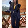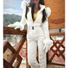 Winter Hooded Jumpsuits Parka One Piece Bodysuit Ski Suit Elegant Cotton Padded Warm Sashes Ski Suit Straight Zipper Tracksuit