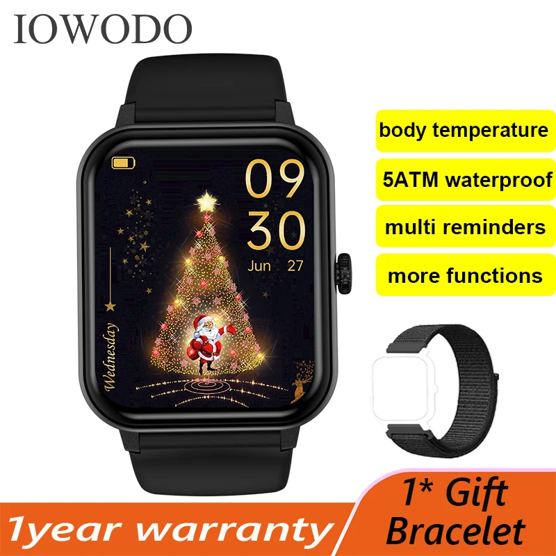IOWODO SmartWatch 1.69inch Large Full Touch Screen 5ATM Waterproof smartwatches Men Women Watch with Body Temperature Free Ship