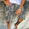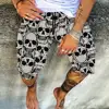 New Men's Pants Summer New Casual All-match Loose Print Stitching Pockets Straight Elastic Waist Thin Shorts Beach For Men