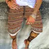 Men's Fashion Casual Drawstring Beach Shorts 2021 Summer Retro Pattern Printed Cotton Linen Short Pants Male Loose Streetwears