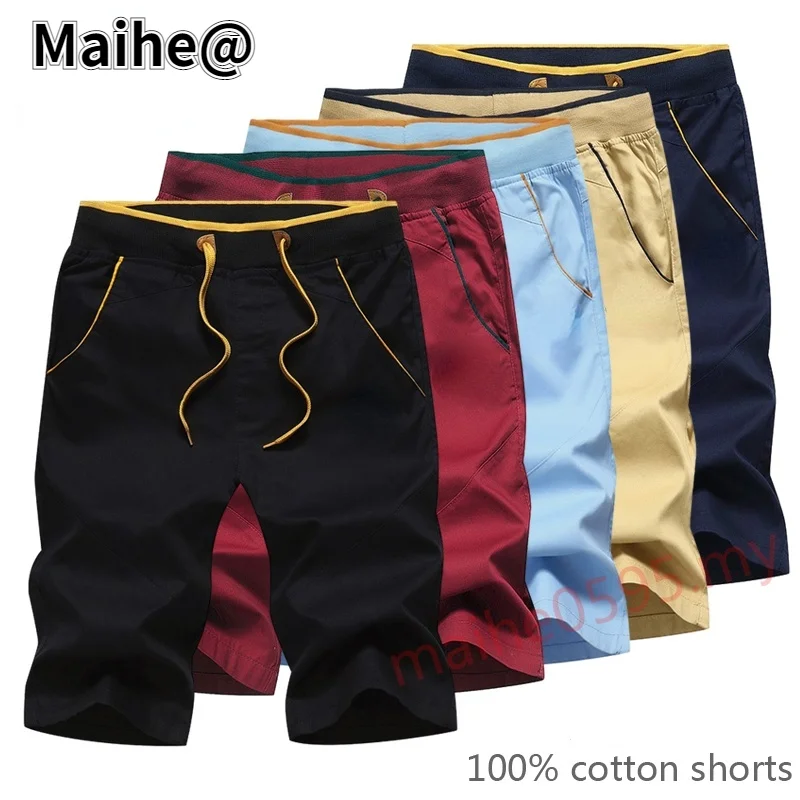 Men's summer 100% cotton shorts casual elastic band youth family daily casual shorts M-5XL