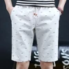 Men Casual Fishbone Print Drawstring Pockets Cotton Beach Shorts Fifth Pants Hand Wash Cotton Regular Fishbone Print Drawstring