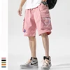 New Men's Casual Shorts Multi Pockets Pink Cargo Bermuda Short Trousers Loose Harajuku Streetwear Classic Knee Length Pants Male