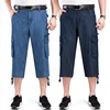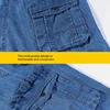 Jeans Shorts Men's Summer Breeches 2021 Multi Side Pocket Casual Bermuda Male Straight Long Blue Denim Loose Cargo Shorts Men