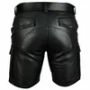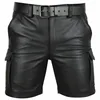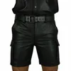 Idopy Motorcycle Faux Leather Short Pants Male Summer Biker Riding PU Cargo Multi-pockets Men Clothing Shorts