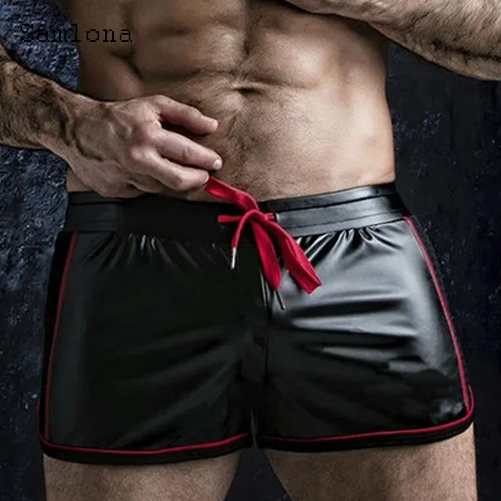 Men Fashion Pu Leather Shorts 2022 Summer New Sexy Drawstring Shorts Plus size 3xl Male Casual Skinny Beach Short Pants Homme