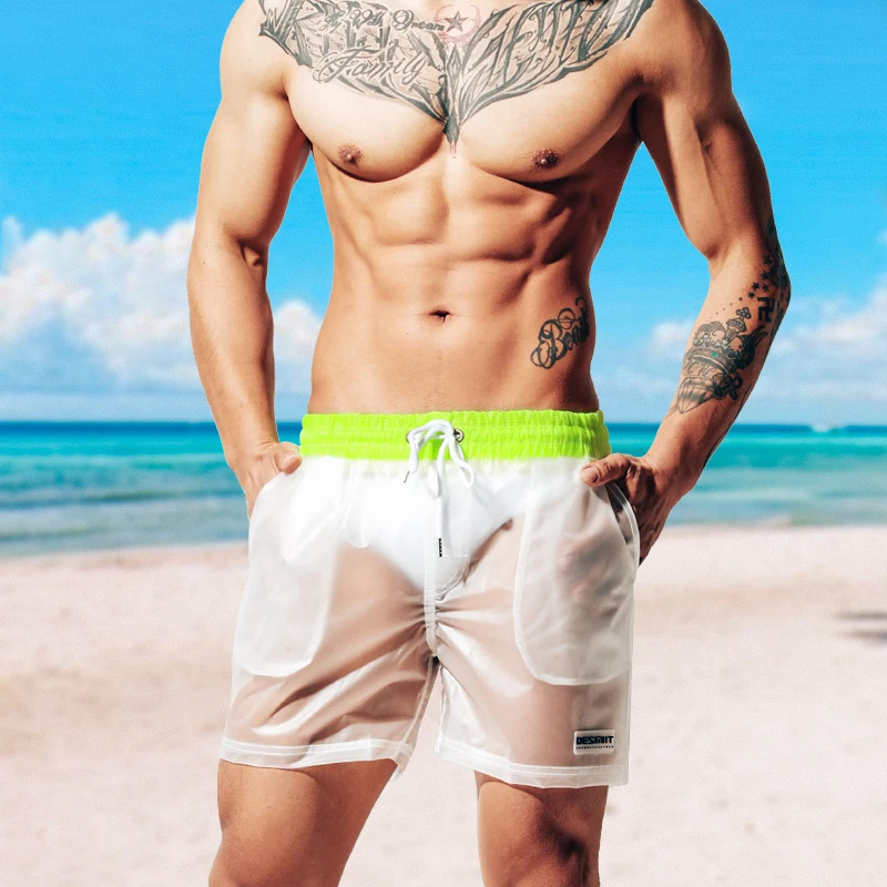 Men's Sexy Transparent Shorts Quick Drying Beach Swimwear Shorts Waterproof Swimsuit Casual Loose Man Beachwear Swimming Trunks