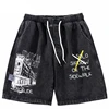 2021 Men Hip Hop Cargo Shorts Streetwear Building Letter Print Denim Shorts Harajuku Jogger Shorts Summer Denim Short Cotton