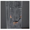 New Men's Summer Short Fashion Trend Overalls Men's Loose Large Pocket Tether Short Male Casual Retro Breathable Denim Shorts