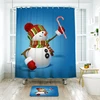 Christmas Decoration Snowman Shower Curtain Polyester Waterproof Fabric Bathroom Curtain With 12pcs Hooks