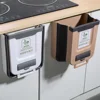 Wall-mounted Kitchen Folding Trash Can With Towel Rrack Large Capacity Car Waste Garbage Bin Cans Recycle Rubbish Bin Dustbin
