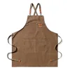 Durable Goods Heavy Duty Unisex Canvas Work Apron with Tool Pockets Cross-Back Straps Adjustable For Woodworking Painting