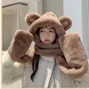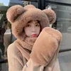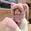 Hat Scarf Winter Female High-value Bear Scarf Gloves All-in-one Three-piece Cold Warm Hat Cute Scarf