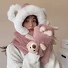 Cute Bear Hat Scarf One Female New 2021 Net Celebrity Winter Wild Scarf Winter Warm Plush Hat