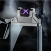 Double Arc Usb Lighter Black Metal Windproof Charging Lighter Cigarette Accessories Wholesale and Retail