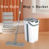 Floor Mop With Bucket Hand-free Wash Lazy Squeeze Flat Mop Magic With 6Pc Replacement Microfiber Pads For Kitchen Cleaning Tool